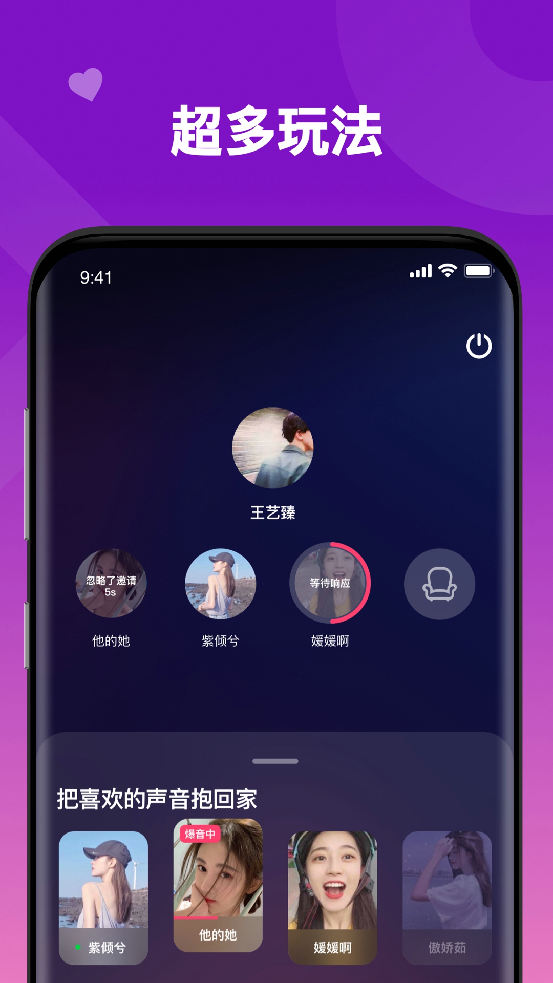 3、一键抱回家,挑选爱的声音,超多玩法,在线语聊,展示自我。