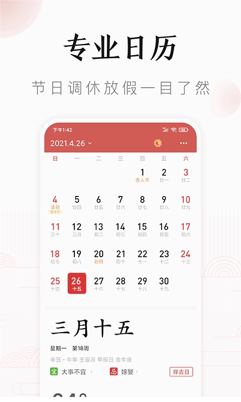 吉历万年历不仅涵盖了国内外的各类节日信息,还能对放假日期进行动态调整,保证用户及时获取最新的节日安排。此外,它还提供了详尽的农历节气变化、每日运势解析等实用功能,助力用户更合理地规划日常生活。凭借传统文化与现代科技的融合,吉历万年历已不只是一款简单的日历工具,更是承载文化传承的重要载体,有效提升了用户的生活品质与文化修养。