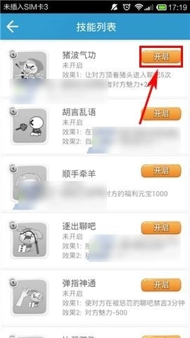2)进入个人主页后,点击【学习技能】按钮,页面会跳转至技能列表,在该页面点击【开启】按钮即可。(如下图所示)