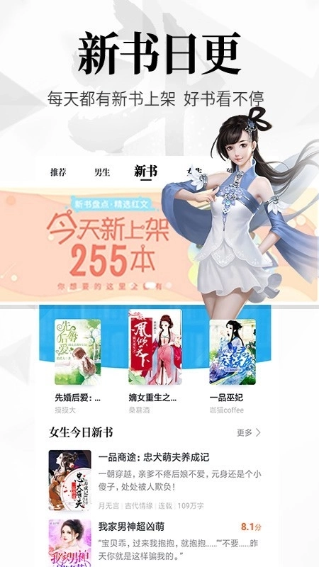 每天都会上新近百本最新小说,涵盖男生精品佳作与女生必读好书,网罗全网最热门、最火爆的优质正版网络小说资源。还有精彩书单的花式推荐,让你轻松告别书荒!