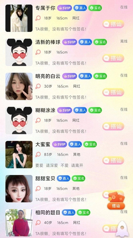 1、每个人资料都是真实的,首次进入需要验证哦。