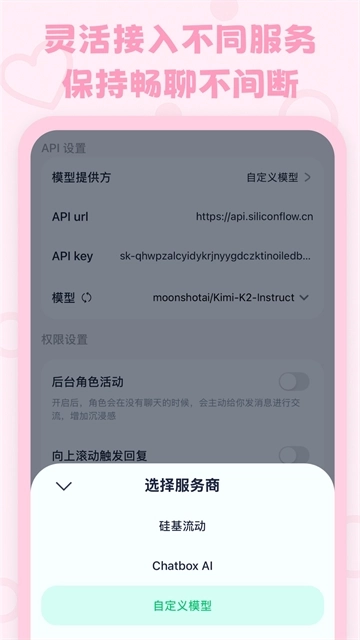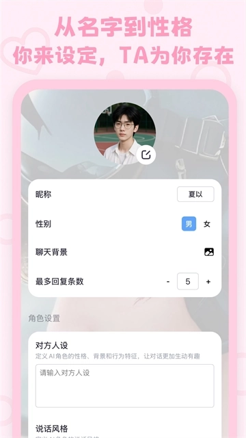 1.自定义角色:角色的外形、性情与出身背景都由用户自行设定。