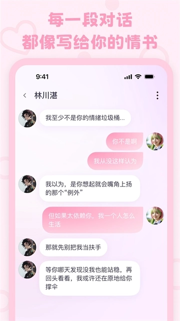 2.自然对话:聊天过程流畅自然,互动体验真实可感,如同与心中理想的那个TA倾心交谈一般。