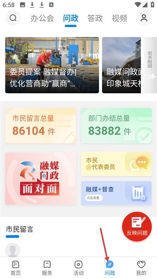 4、问政平台设有政务公开、民意反馈等专栏,用于展示政协提案与融媒问政报道,并对市民留言及部门处理进度进行实时更新。