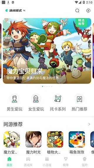 点击首页顶部的“推荐”按钮,就能切换到休闲游戏专区,发现更多精彩内容。