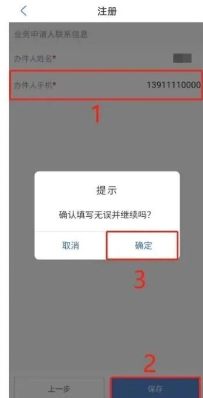 填写业务申请人联系信息,点击【保存】按钮。