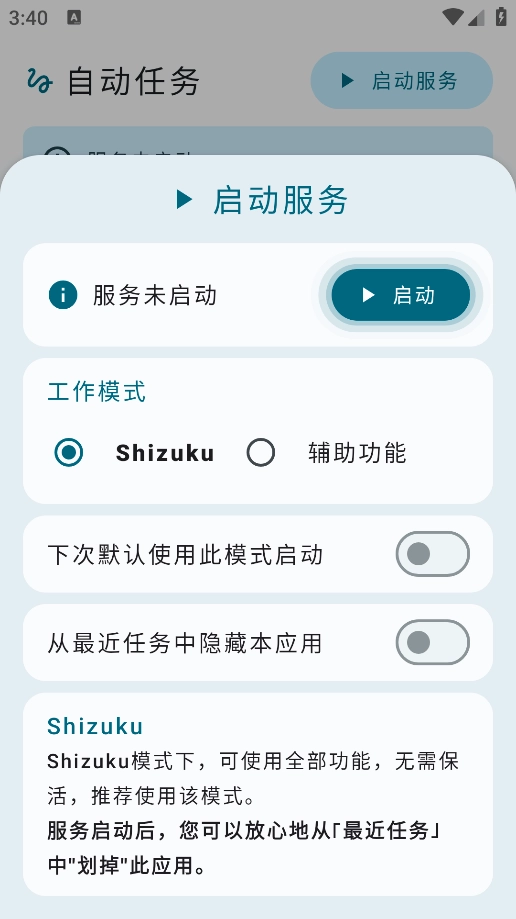 自动任务是一款功能强大且操作简便的安卓自动化任务应用,能让用户通过创建可自定义的自动化流程,轻松简化重复性操作,有效提升效率。它借助Shizuku获取更高权限,可实现后台弹窗、蓝牙设备连接状态监控等高级功能,还支持模拟点击、发送消息、修改系统设置、调用API等多种操作,并且允许用户通过编写JavaScript脚本完成复杂任务。应用采用Material Design设计风格,操作逻辑直观易懂,新手也能快速上手,同时提供了详细的引导流程,用户只需通过“添加任务-编辑规则-启动服务”三个步骤就能完成设置。此外,应用默认具备系统保活机制,无需额外设置即可常驻后台,保障任务稳定运行,还支持自定义规则、脚本和插件,充分满足用户的个性化需求。