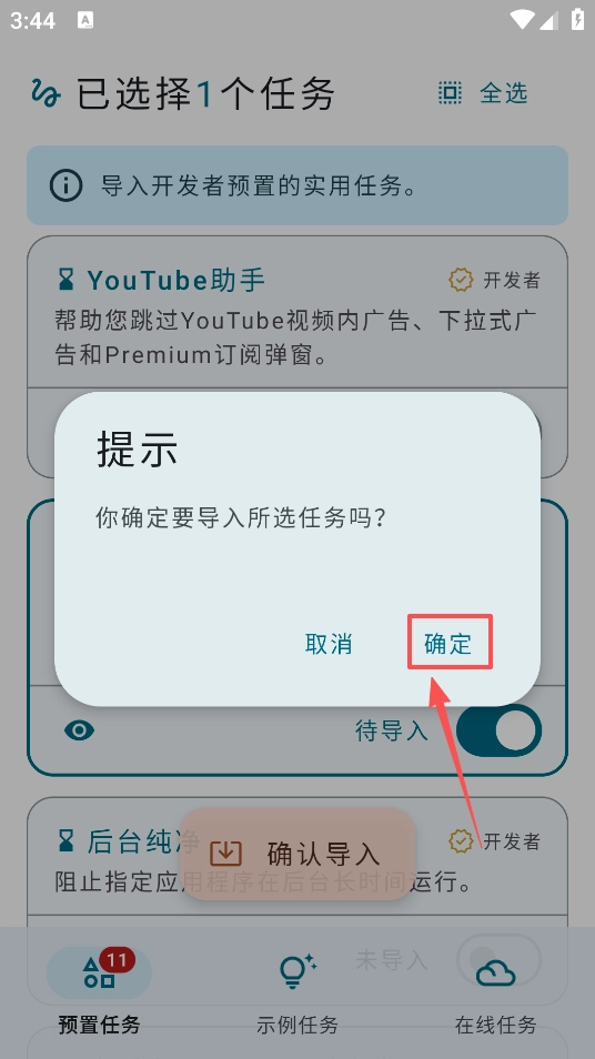 点击确定导出任务
