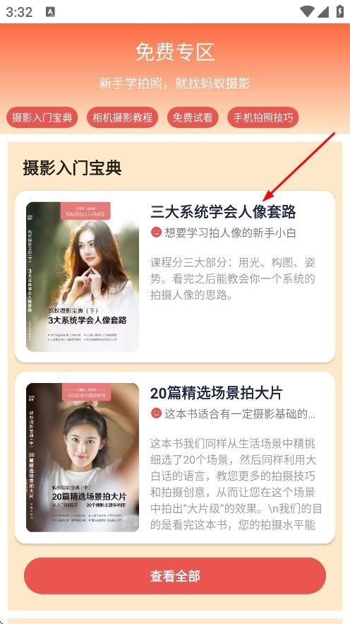 2、点击三大系统学会人像套路,进入课程内容页面。