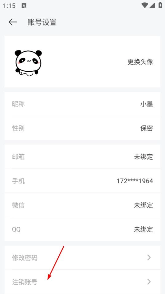 在账号设置页面,点击注销账号选项,即可进入注销账号的页面。