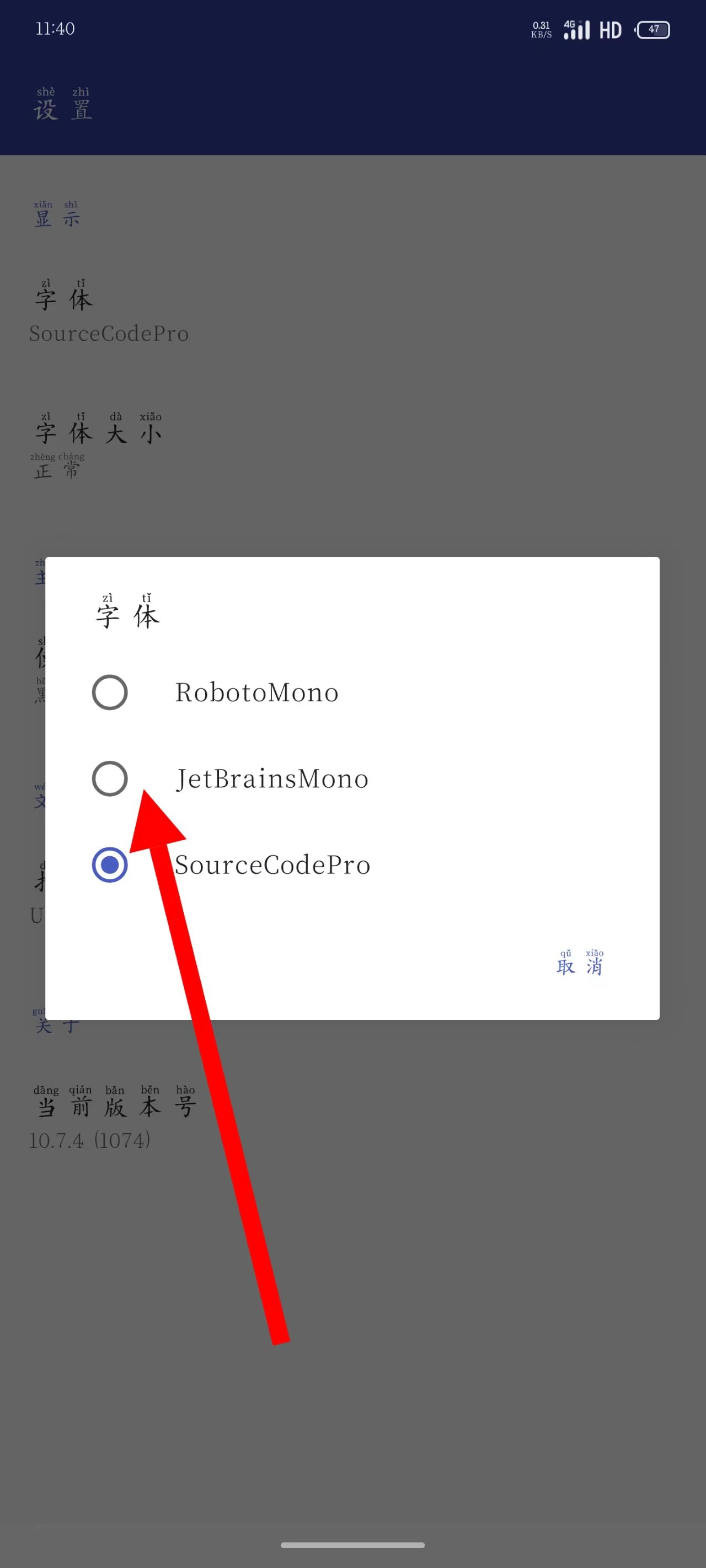 在弹窗中,选择喜欢的字体,即可完成字体设置。