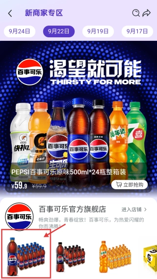 在商品列表中,找到百事可乐的商品条目,点击进入其详情页面。