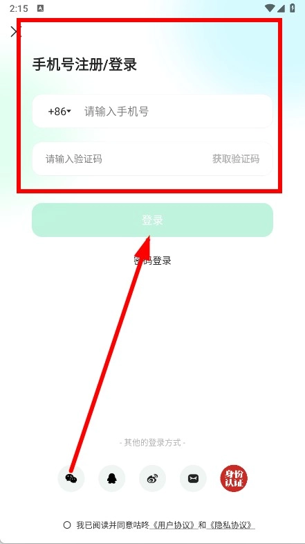 4、填写手机号,输入收到的验证码,点击登录按钮,就能完成注册流程。