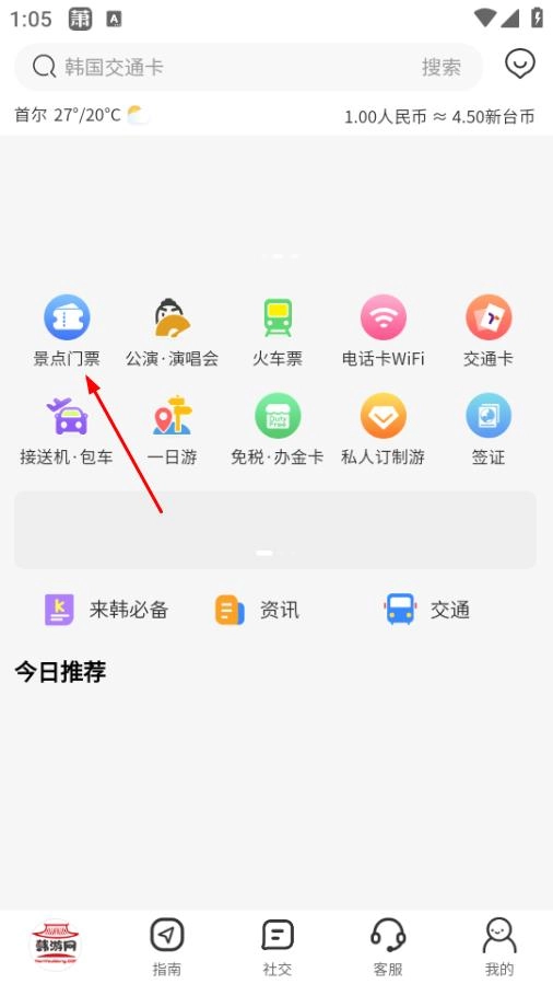 在韩游网首页找到“景点门票”选项并点击,即可进入景点门票的分类页面。