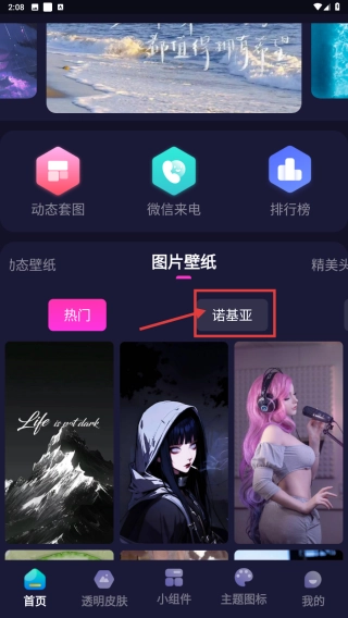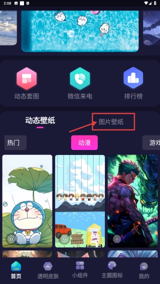 打开壁纸功能,选择图片壁纸选项,进入图片壁纸的分类页面。