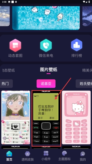 在图片壁纸分类页面,点击诺基亚分类,查看诺基亚风格壁纸。