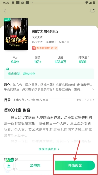 在小说详情页,点击“开始阅读”按钮,即可开启小说阅读。