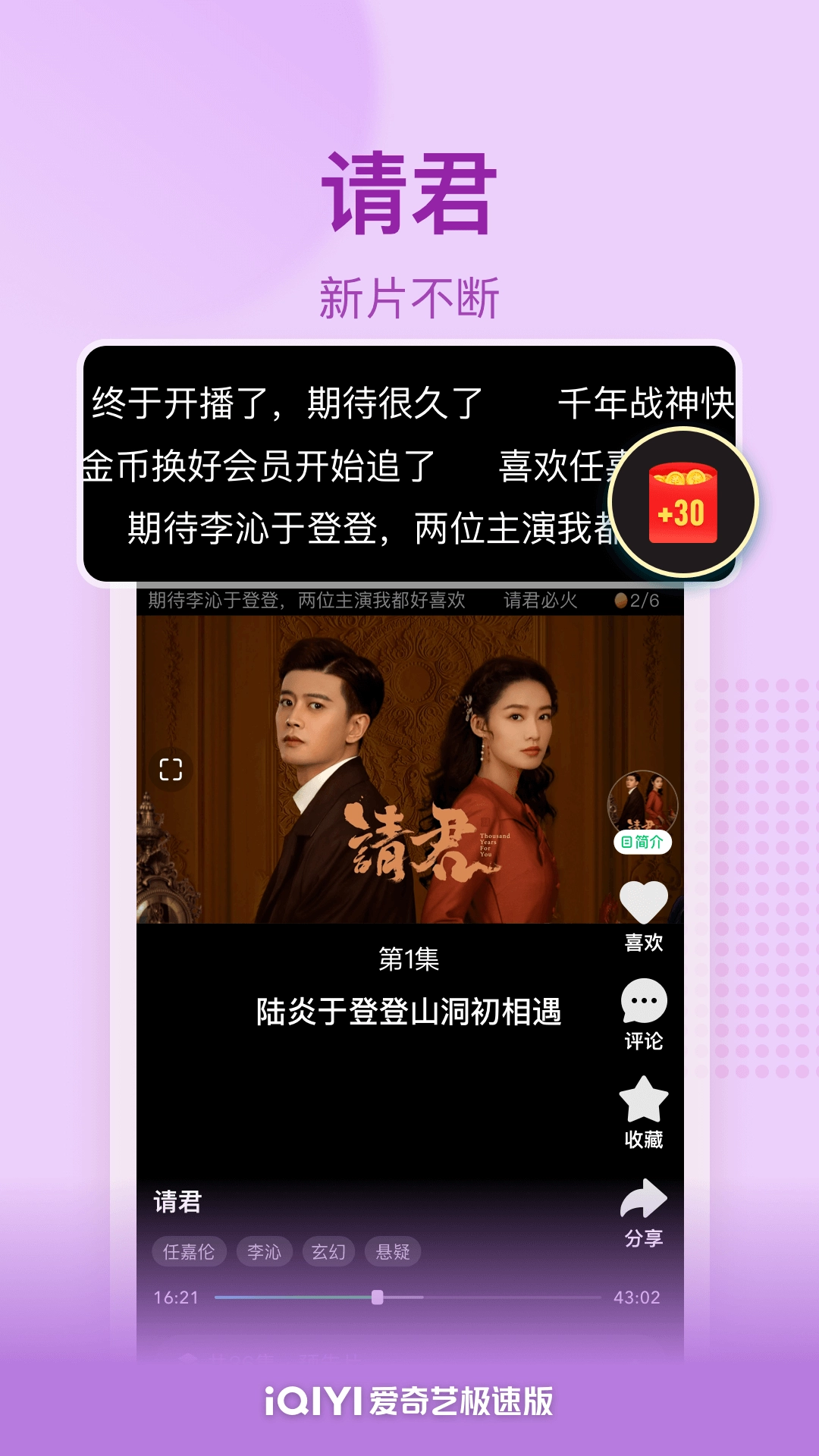 爱奇艺极速版版属于爱奇艺旗下的极速版本应用,该软件已移除启动广告、播放广告及其他部分广告,同时取消了签名校验,绝大多数内容均可免费观看,用户在观看过程中能够领取红包,邀请好友共同观看也能获得红包奖励。