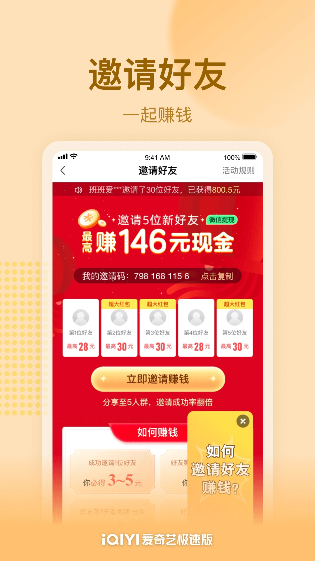 邀请好友领红包,边看视频边赚金币!看视频就能赚金币,分享给亲友立刻领红包,一起赚钱更开心!超多福利等你来解锁!