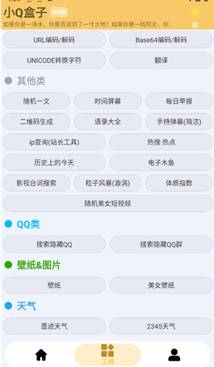 3、点击工具板块,提供了很多的实用工具
