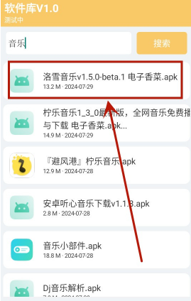 6、例如搜索音乐时,找到自己所需的音乐软件后,直接点击打开即可。