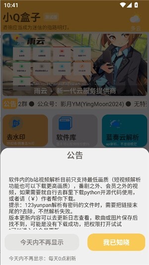 小q盒子是一款功能全面的手机工具箱应用,去水印、软件库、蓝奏云解析三大核心功能,能帮用户便捷处理图片视频水印等需求,无需额外安装软件,直接点击对应小工具即可使用,轻松应对各类问题,实用性很强!