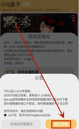 2、点击【我已知晓】