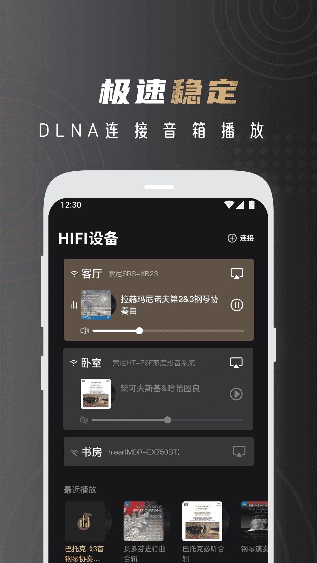 5、极速稳定,DLNA连接音箱播放,听歌更便捷