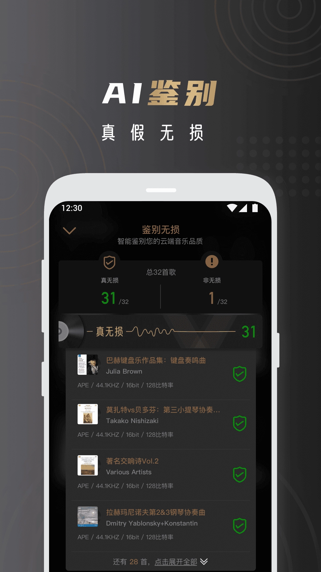 2、AI鉴别无损音乐,你收藏的无损音乐究竟是真无损还是假无损?借助最新AI技术,我们能帮你鉴别上传的无损歌曲是否为真无损。