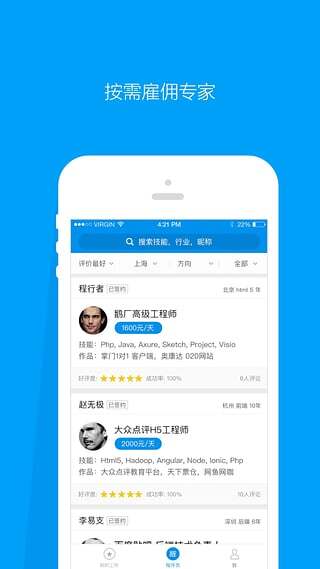 《程序员客栈》为用户提供BAT级开发者雇佣及签约服务。程序员能够借助《程序员客栈》,利用碎片化时间助力有需求的公司完成作品,从而赚取额外收入。创业公司可在《程序员客栈》聘请到高水平程序员为自身工作。
