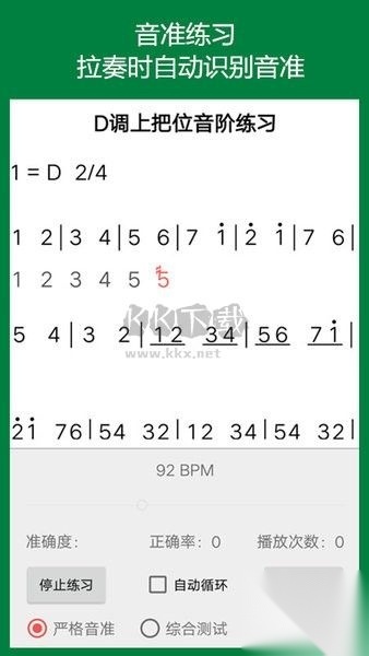 1. 节奏练习:能够按照用户设定的任意速度播放曲谱,便于用户跟随演奏,对提升初学者的节奏感效果显著。