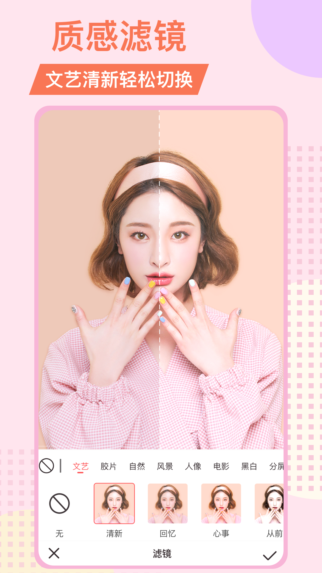 「美颜滤镜」您可以创建投影,高光,描边,现代艺术,卡通,模糊,玻璃,铅笔,动画书,马赛克等特效,多款独有特色的特效。