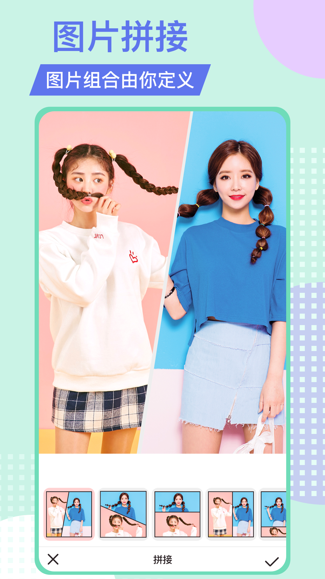 自由拼图、模版拼图、图片拼接三种经典拼图模式,多张图片一次晒出来。