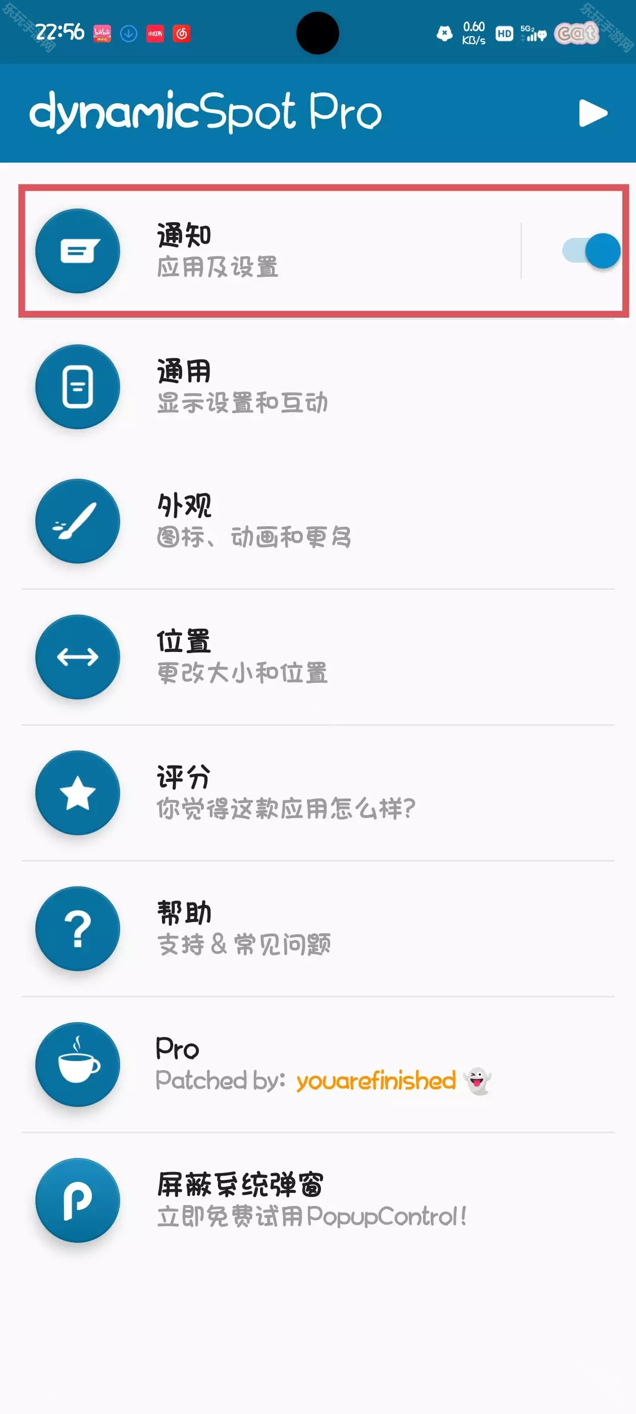 3、回到主界面,点击“通知访问”选项,打开dynamicSpot的通知权限。