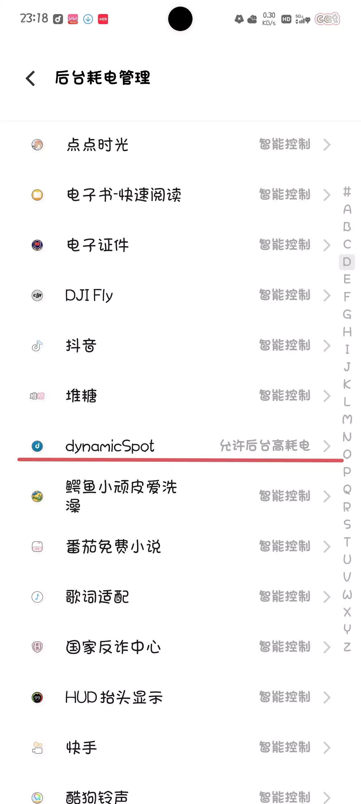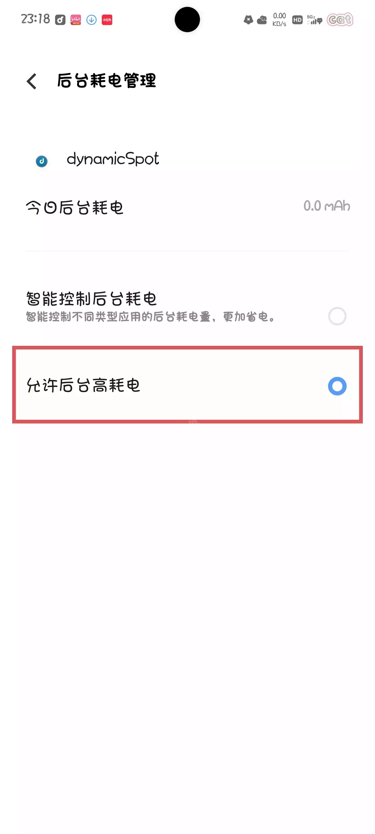 4.进入后台耗电管理界面,开启dynamicSpot的高耗电权限。