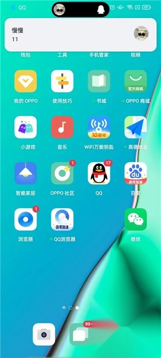 5.按照手机前置摄像头的位置来调整灵动岛的摆放位置,需要留意的是,不要把快捷栏彻底隐藏起来。