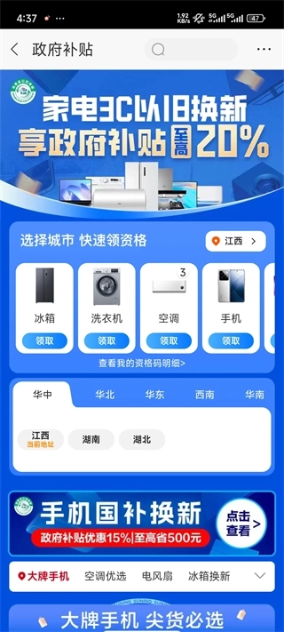 1、打开软件在首页的上方可以看到有【政府补贴】