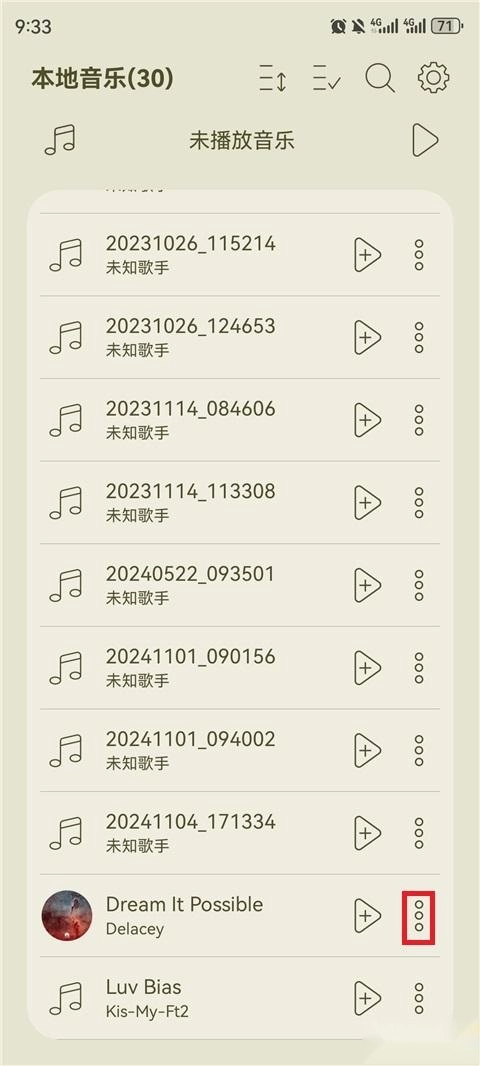 2、选择想要导入的音乐,点击最右边三个圆圈。