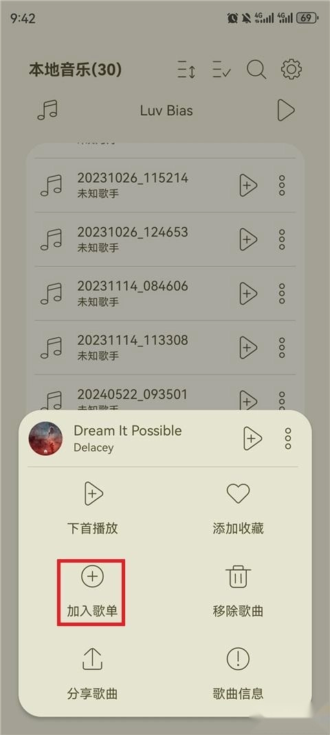 4、选择需要加入的歌单。