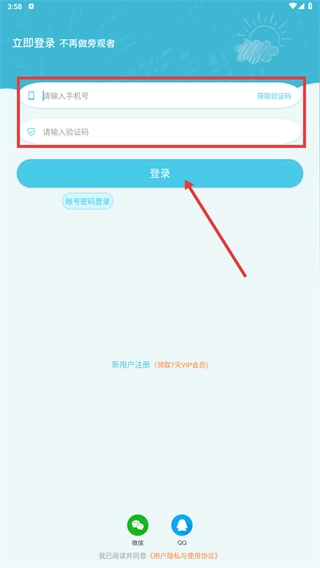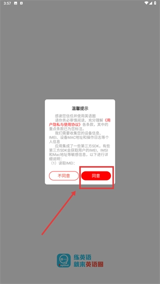 1、仔细阅读《用户隐私与使用协议》后,点击“同意”按钮,即可进入登录界面。