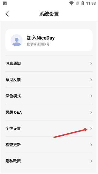 3、进入【系统设置】界面后,在列表里找到【个性设置】选项并点击,就能进入相应的个性化配置页面。