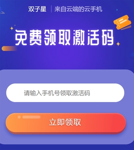在双子星云手机激活码领取页面,填写你注册时使用的手机号码,就能免费获取激活码,激活码会通过短信发送给你。