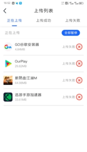 接下来就可以上传你想要上传的游戏或者应用了,上传时最好在WiFi环境下进行,这样网络会更稳定,而且也不会消耗过多流量。