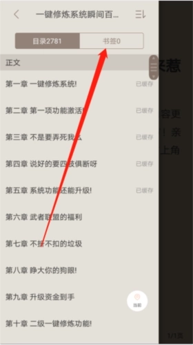 8、我们还可以点击上方的书签,通过这里能够快速找到我们在这篇小说里添加过的书签。