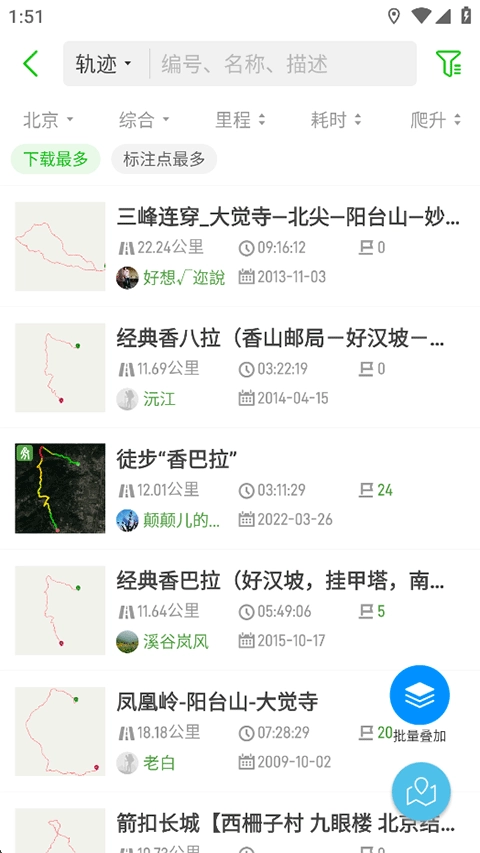 数千万精华轨迹揽括全国户外线路,全部免费。