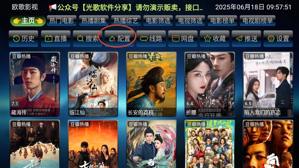 1、打开软件进入首页,点击顶部的【配置】。