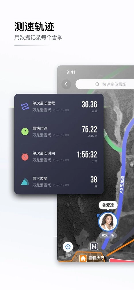 全新推出的「轨迹测速」功能,能够实时记录滑行时的轨迹与速度,数据更为完善,维度也更加多元。