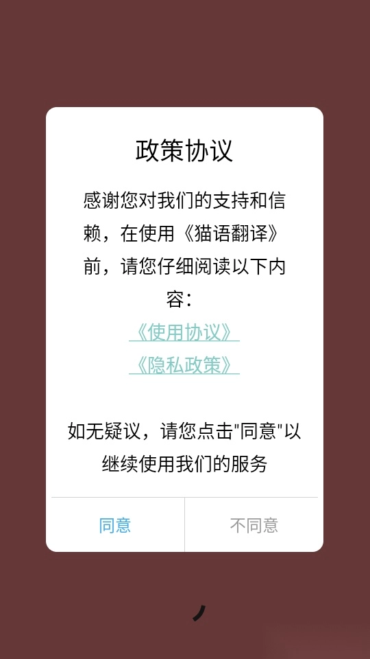 首先打开软件,第一步是阅读“政策协议”,之后点击“同意”按钮进入下一步操作。