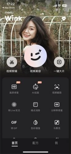Meitu Wink画质修复具备“捏脸”“逆转素颜”“实况美颜”等功能,当前主打“视频分辨率修复”等特色。启动该软件后,点击“画质修复”选项就能启用对应功能。