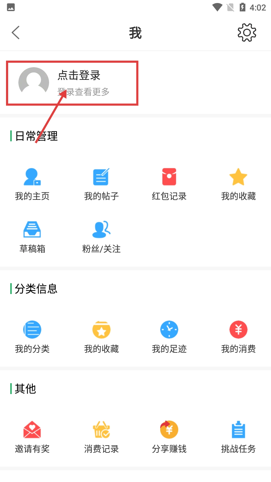 在论坛首页点击左上角的个人中心图标,即可进入个人中心页面。